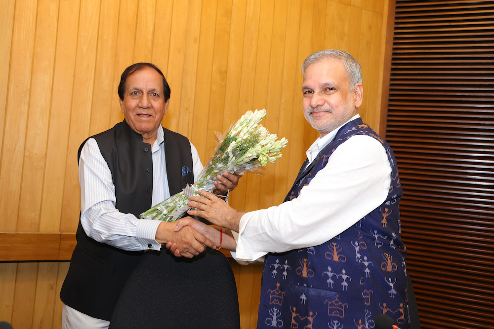 Amb. Surendra Kumar greeting Prof Chintamani Mahapatra